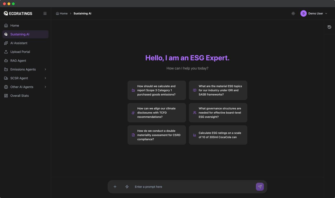Developed with our strategic partner EcoRatings.ai, a GenAI powerhouse incubated and recognized by Stanford and Forbes India. This industry-agnostic, scalable solution automates sustainability workflows with its agentic architecture.