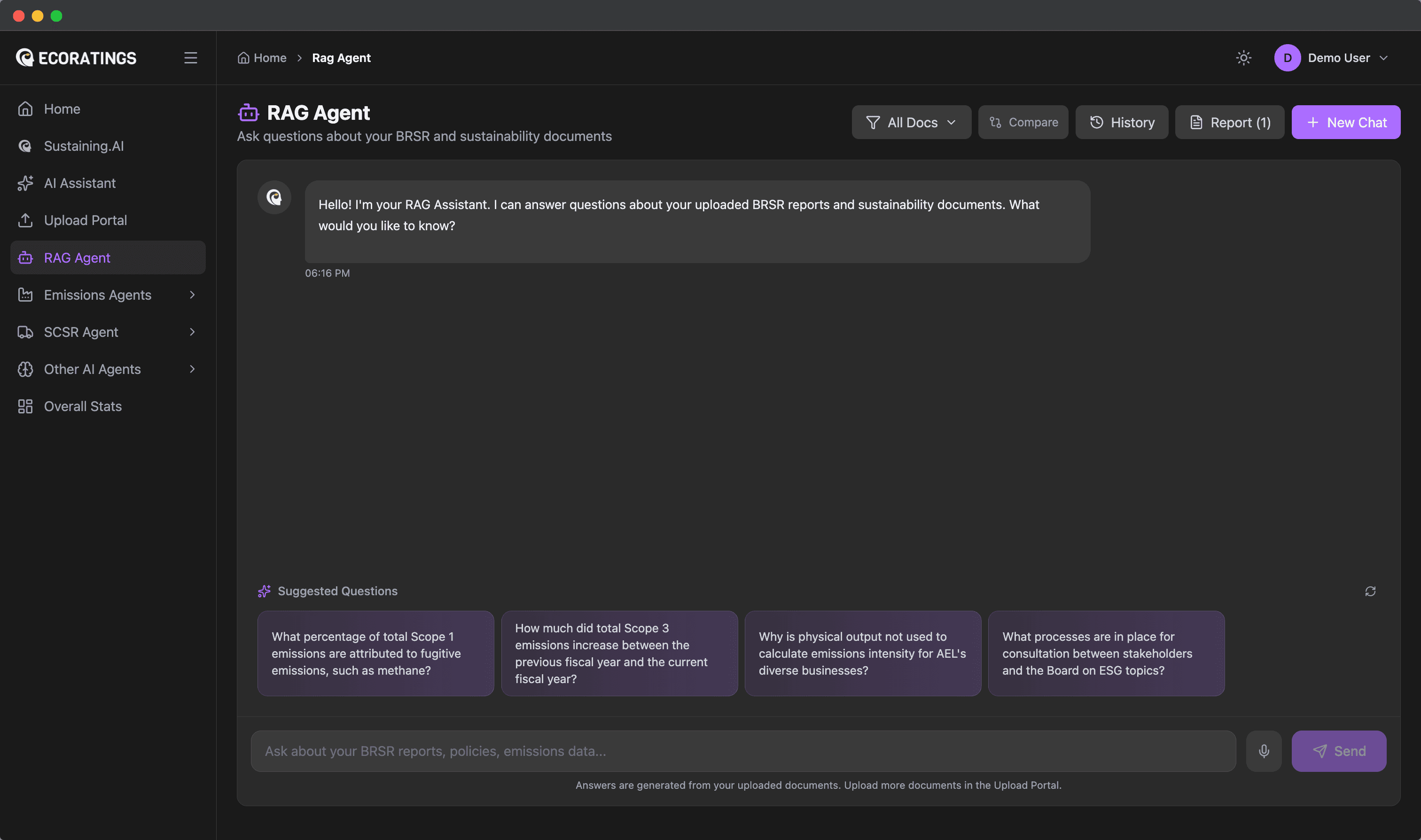 With 20+ industry specific GenAI agents integrated and plugged in one platform ready to be used as a plug and play solution, it streamlines need-gap analysis, ESG ratings, reporting, monitoring, tracking, optimization frameworks, and decarbonization initiatives by leveraging real-time data, established methodologies, and evolving regulatory requirements.